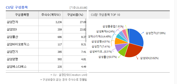 2021.03.08 기준 KODEX 삼성그룹 ETF의 구성종목