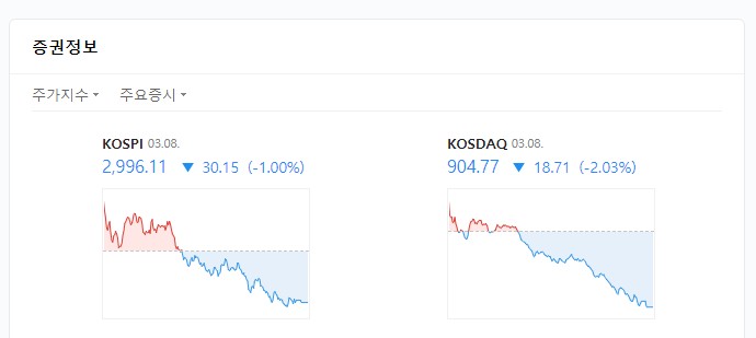 2021.03.08 기준 코스피, 코스닥 지수