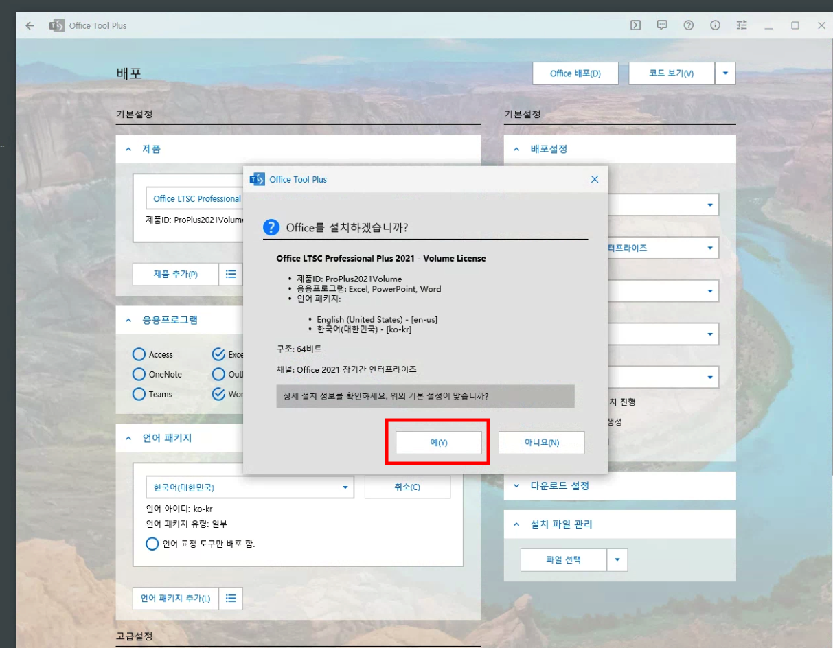 Office Tool Plus는 마이크로소프트 Microsoft Office 배포 도구를 기반으로 하며 사용자를 위해 Office를 쉽게 배포할 수 있도록 합니다.이 도구를 사용하여 사용자는 Office 설치를 쉽게 사용자 지정하고 설치할 항목과 업데이트할 제품을 지정할 수 있습니다.해당 툴은 아래 버젼에 오피스 설치를 지원합니다. 정품인증 크랙 토렌트 크랙 제품키 원하는 옵션을 선택 후 자동 다운로드 후 설치되는 방식이라 용량이 작습니다..