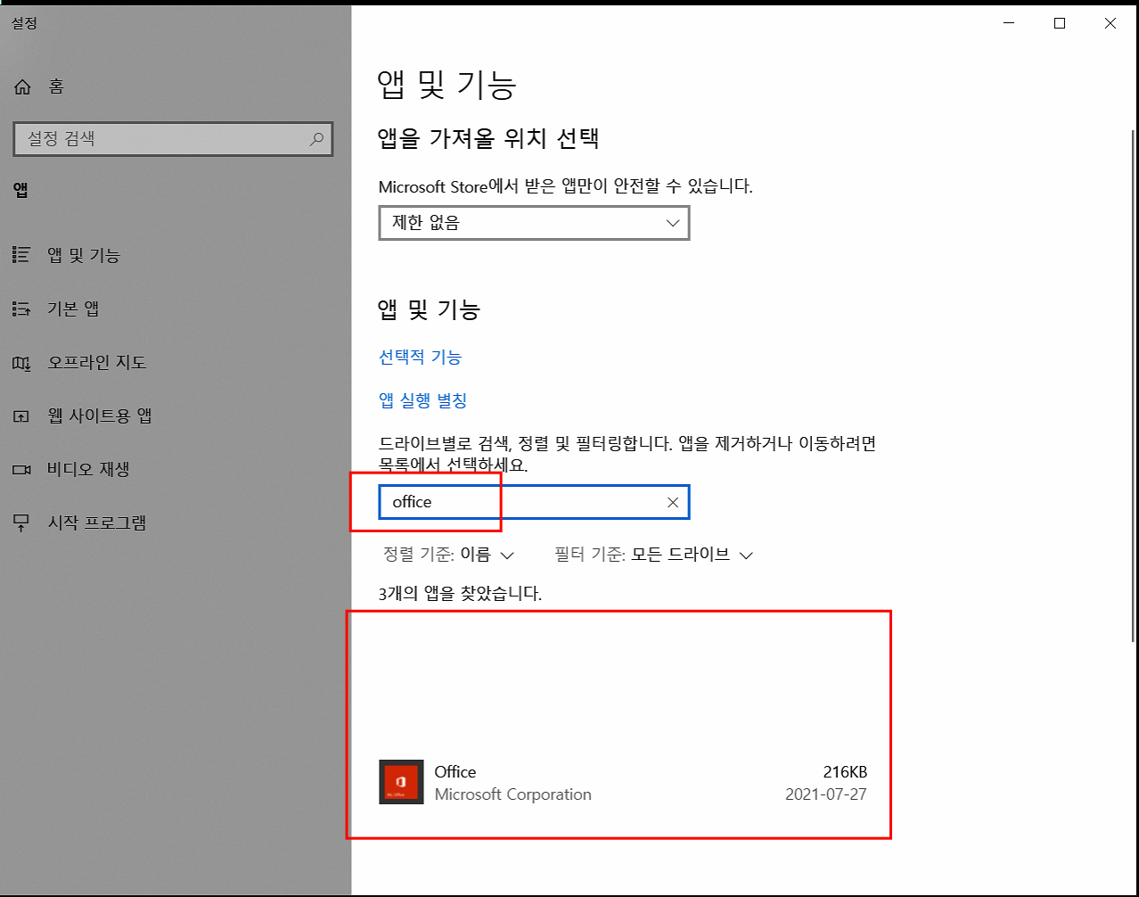 엑셀, 파워포인트, 워드 등 필요한것만 골라서 설치가 가능합니다.