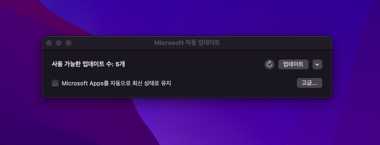 맥에서 MS오피스를 설치하고 아래 화면같은 자동 업데이트 를 끄고싶을 것이다.