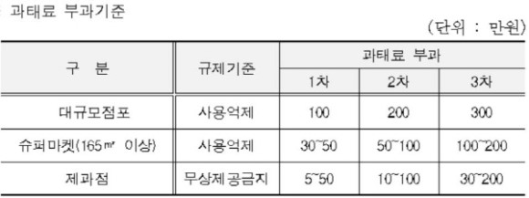 대규모점포·슈퍼마켓에 입점한 모든 업체는 규제대상이 돼 일회용 봉투 및 쇼핑백 사용이 금지됩니다. 임대·판촉·수수료업체·면적 등의 조건과 관계없이 일괄 적용됩니다. 그러나 대형점포·슈퍼마켓과 점포 내에 입점한 임대업체가 규정을 위반했을 때에는 입점 업체와 관리 주체 중 관리 및 운영 주체에게 과태료가 부과됩니다.