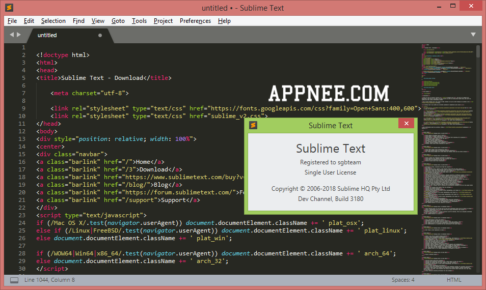 AppNee는 Windows용 서브라임 4, 3(& classic 2) 정품인증 크랙 토렌트 크랙 제품키 휴대용 정식 등록 버전(전체), Ubuntu 및 Mac용 잠금 해제된 기본 프로그램(32비트 및 64비트 모두), 사전 활성화된 Mac용 버전을 제공합니다. (모두 무제한 사용자 라이선스가 있으며 등록이 필요하지 않음).