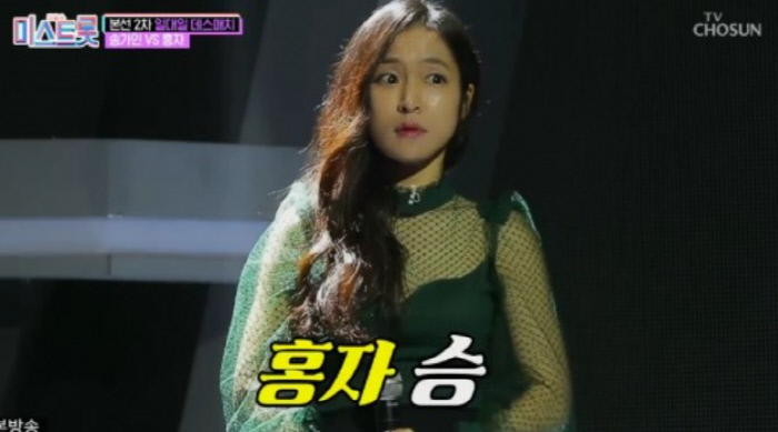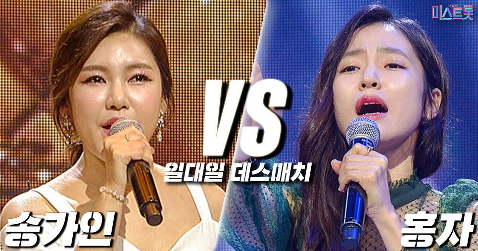 결국 이들의 데스 매치는 결승전을 방불케 했다. 이날 홍자는 심수봉의 ‘비나리‘, 송가인은 고봉산의 ’용두산 엘레지‘를 선곡해 대결을 펼쳤다. 박명수 등 마스터들도 선택의 어려움을 토로할 정도였다. 장윤정은 “둘다 노래로만 승부를 봤다. 정말 만족감이 들었다. 두 친구한테 고맙다고 하고 싶었다”고 했고, 신지는 “이 두 분 중에 한 분을 택해야된다는 상황이 화가 났다. 근데 홍자가 실수를 했다”고 지적했다. 홍자가 고음부분에서 미세한 음이탈 실수를 저지른 것이다.