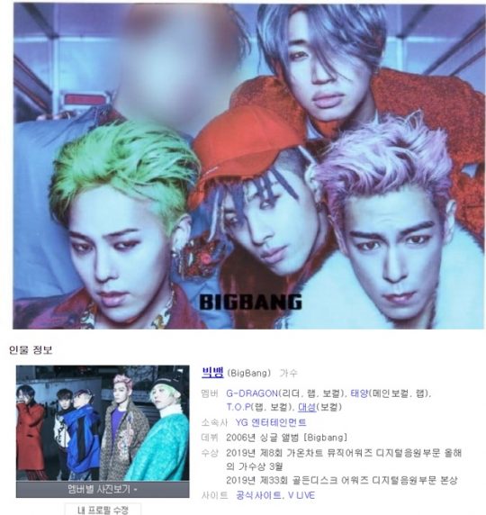 YG가 운영 중인 빅뱅 팬클럽 카페에서도 승리의 얼굴이 지워졌다. 인터넷 포털사이트의 인물검색에서도 승리의 이름은 빅뱅 멤버에서 제외됐다.