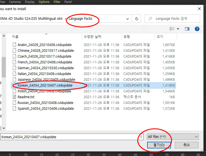 다운로드 받은 폴더에서 랭귀지백에 Korean을 열기 한다.