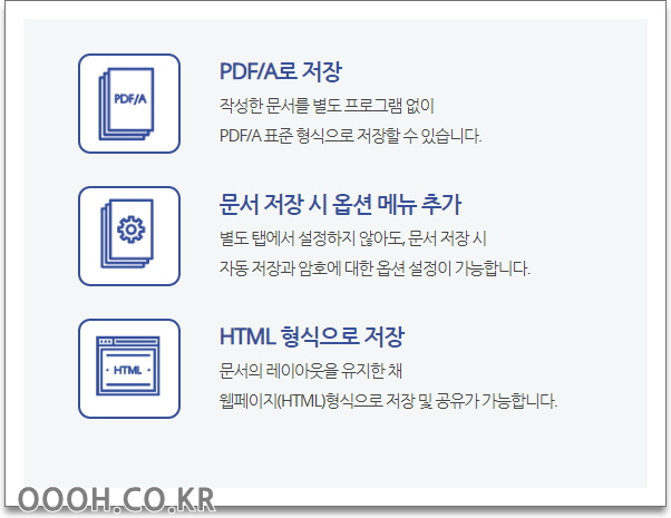 PDF/A 표준 형식으로 저장할 수 있습니다.