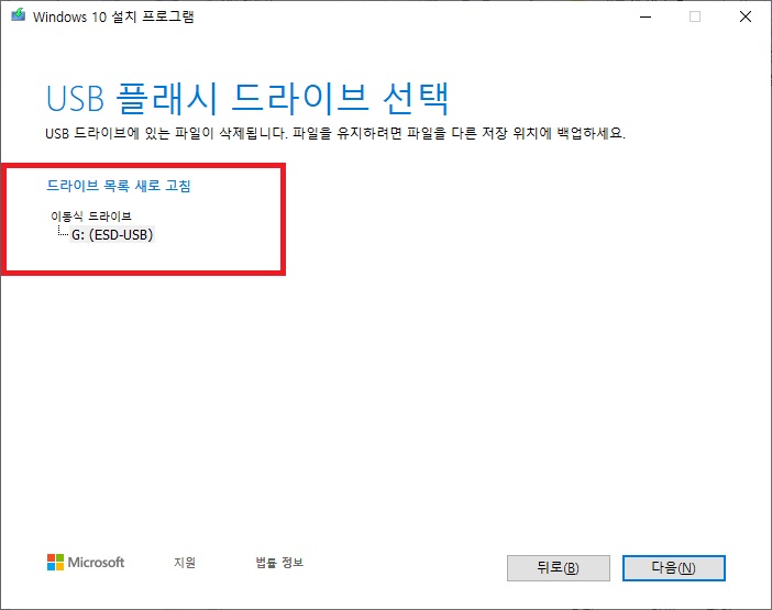 만약 USB 드라이브를 마운트 하지 않았다면 여기에서 선택을 할 수 없겠죠? 혹시라도 USB 드라이브를 안 넣으셨다면 마운트 하시고 [드라이브 목록 새로 고침]을 하시면 됩니다. 다시 강조하지만 USB 드라이브 내용이 모두 지워지기 때문에 혹시라도 중요한 파일이 들어 있다면 미리미리 옮겨 두세요.