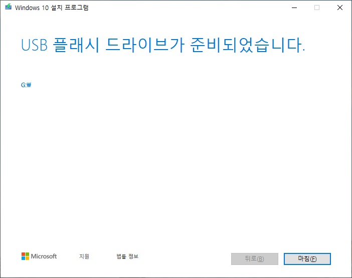 이 메시지까지 보셨으면 윈도우10 설치 USB 만들기는 끝난 겁니다. 이제 설치를 해야 하는데요 그전에 고민을 하셔야 할게 하나 있습니다. 바로 드라이브 포맷 후 클린 설치를 할 것인가 아니면 그냥 포맷 없이 설치를 할 것인 거죠. 포맷 후 클린 설치는 파티션을 다 날리고 하기 때문에 상당히 깨끗하게 설치가 된다는 장점이 있는 대신 시간이 좀 더 걸리고요. 포맷 없이 설치를 하는 방법은 백업 없이 진행을 하기 때문에 빨리 설치가 되긴 하는데 파티션이 여러 개 생겨서 드라이브가 지저분해질 염려가 있습니다.