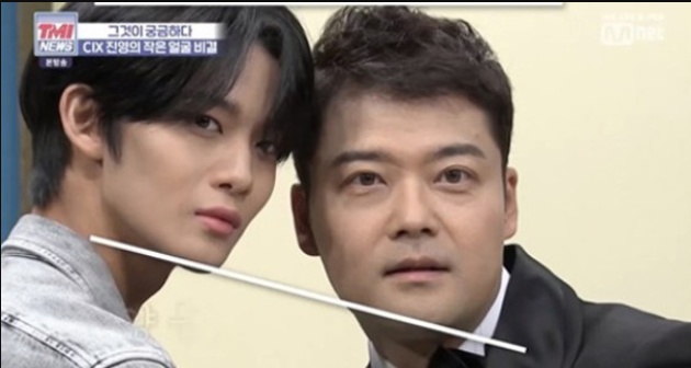 전현무가 배진영의 작은 얼굴에 놀라워하면서 어떻게 그렇게 얼굴이 작은냐고 물었고