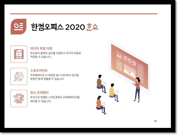 다양한 효과나 배경을 적용한 다음 프레젠테이션을 바로 실행할 수 있습니다.