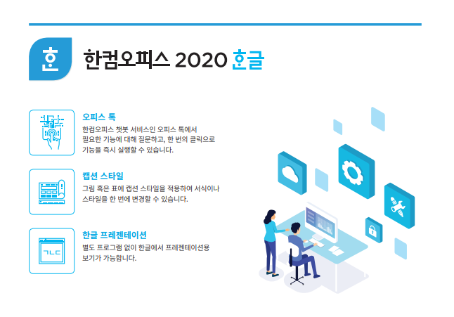 한컴오피스 챗봇 서비스인 오피스 톡에서 필요한 기능에 대해 질문하고,