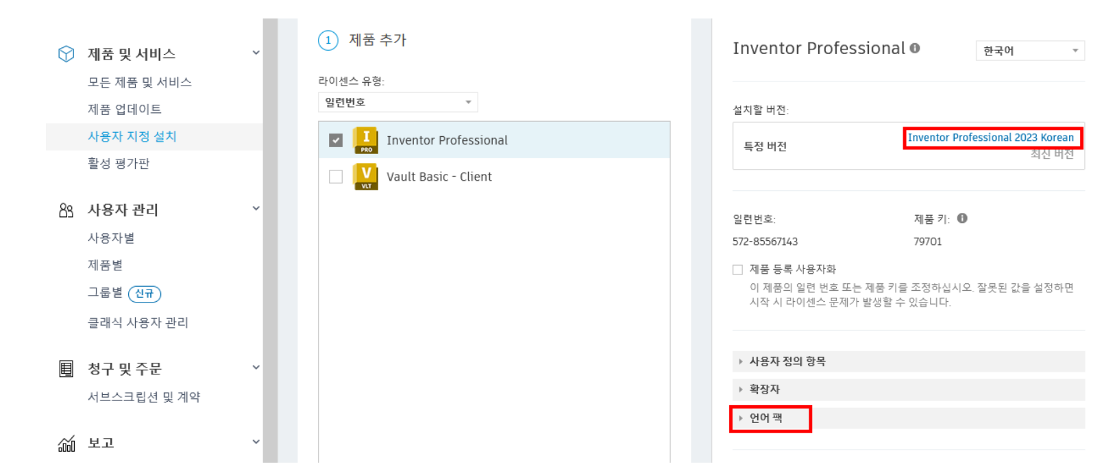 인벤터 언어팩 적용