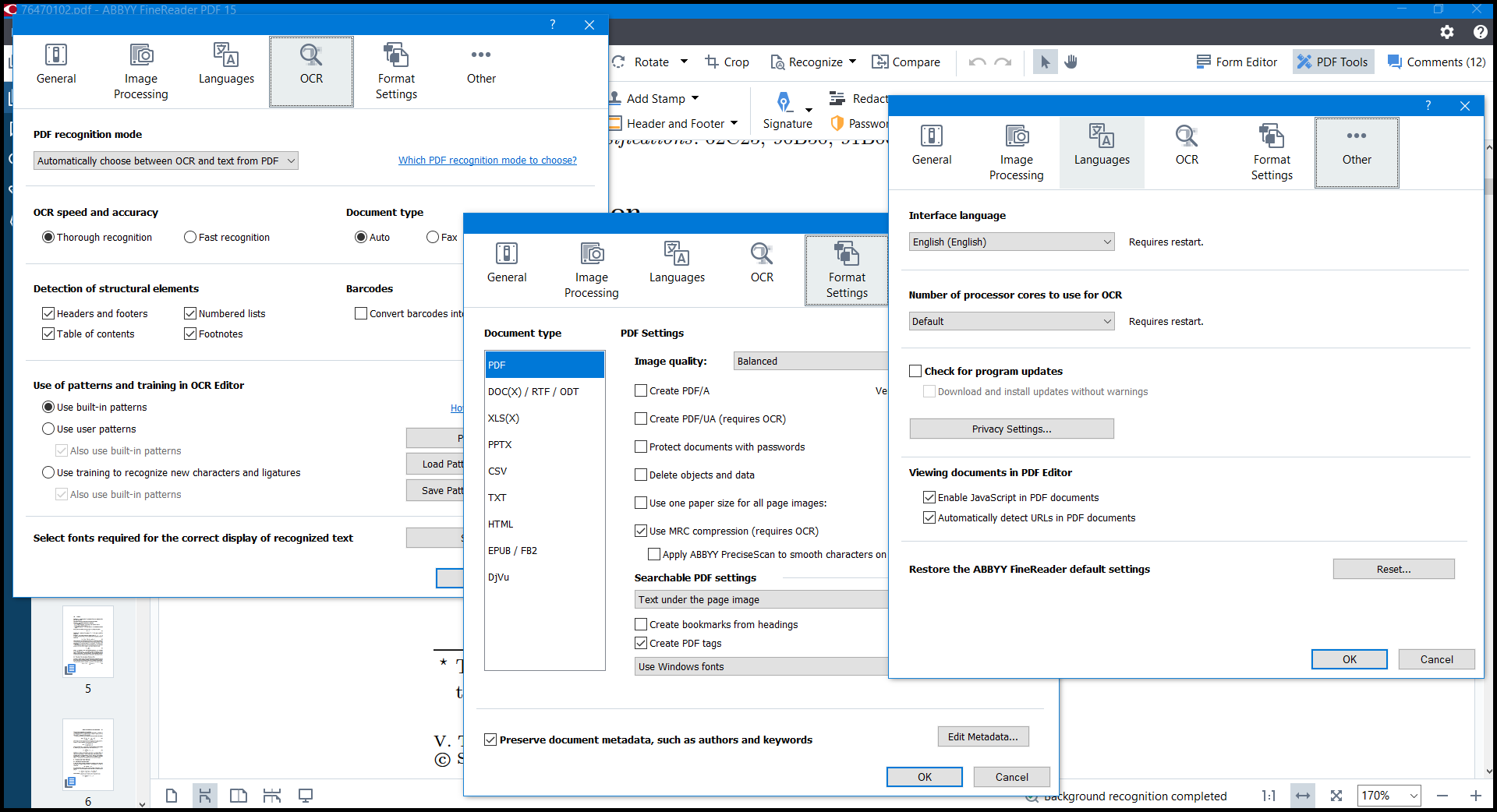 ABBYY FineReader OCR 소프트웨어는 종이 및 이미지 문서를 Microsoft Word, Excel, PDF 및 전자책을 포함하여 검색 및 편집 가능한 형식으로 정확하게 변환합니다. 모든 언어 조합에서 192개 언어를 인식하는 FineReader의 비할 데 없는 인식 및 변환 기술이 향상되어 다시 입력하거나 다시 포맷할 필요가 없습니다. 응용 프로그램은 모든 원본 형식을 유지하고 훨씬 더 높은 정확도로 표와 그래프를 인식합니다. 백그라운드 처리, 더 빠른 이미지 로딩, 원클릭 자동화는 훨씬 더 빠르게 완료되며 검증 및 편집 도구는 OCR 결과의 교정 및 편집을 간소화합니다.