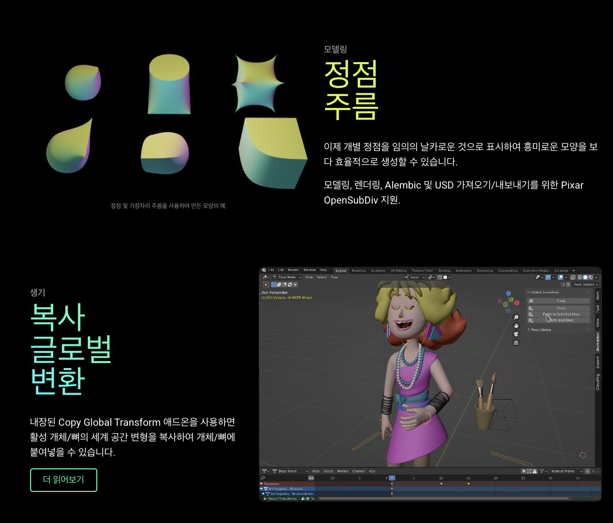 Blender Foundation과 온라인 개발자 커뮤니티는 이미 뛰어난 릴리스에 대한 확실한 업데이트인 Blender 3.1을 선보이게 된 것을 자랑스럽게 생각합니다.