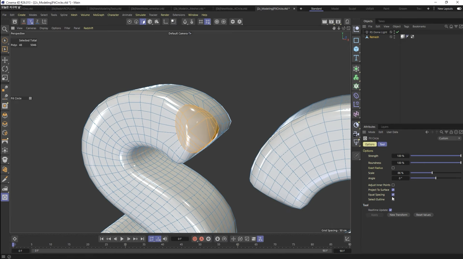 - 선택한 지오메트리 구성 요소를 원형 모양으로 변환