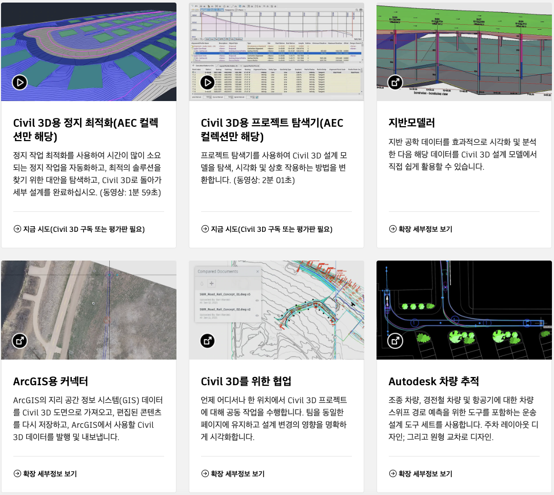 Civil 3D는 도로 및 고속도로, 철도, 교량 및 터널, 부지 개발, 폭풍 및 위생 네트워크를 비롯한 다양한 토목 엔지니어링 프로젝트의 워크플로를 지원합니다.
