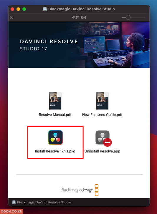 DaVinci Resolve Studio의 표준 설치 절차를 따릅니다.