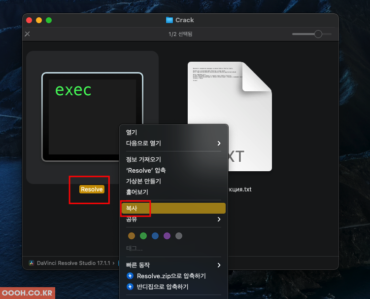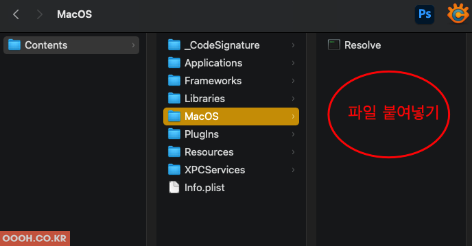 "Resolve" 실행 파일을 macOS 폴더로 이동