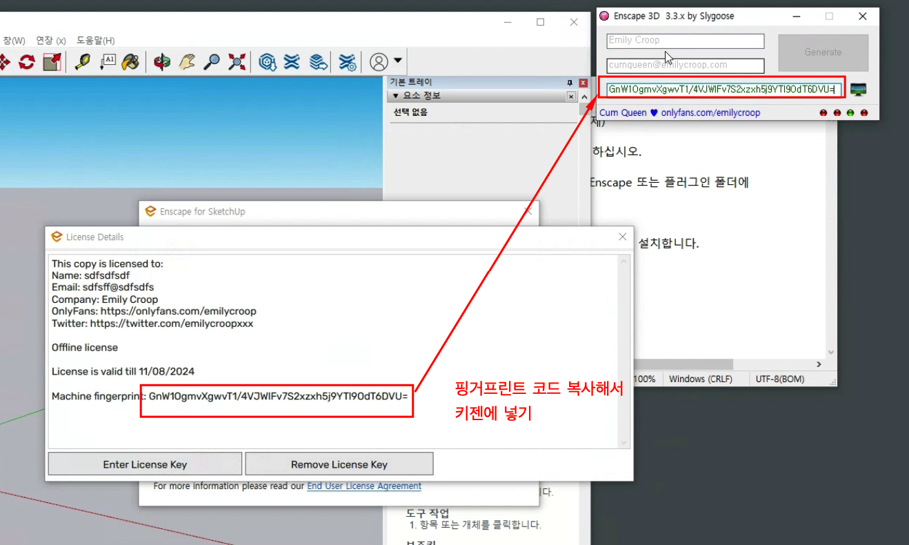 핑거 프린트 코드를 복사하여 키젠을 켜고 3번째 칸에 붙여넣습니다.