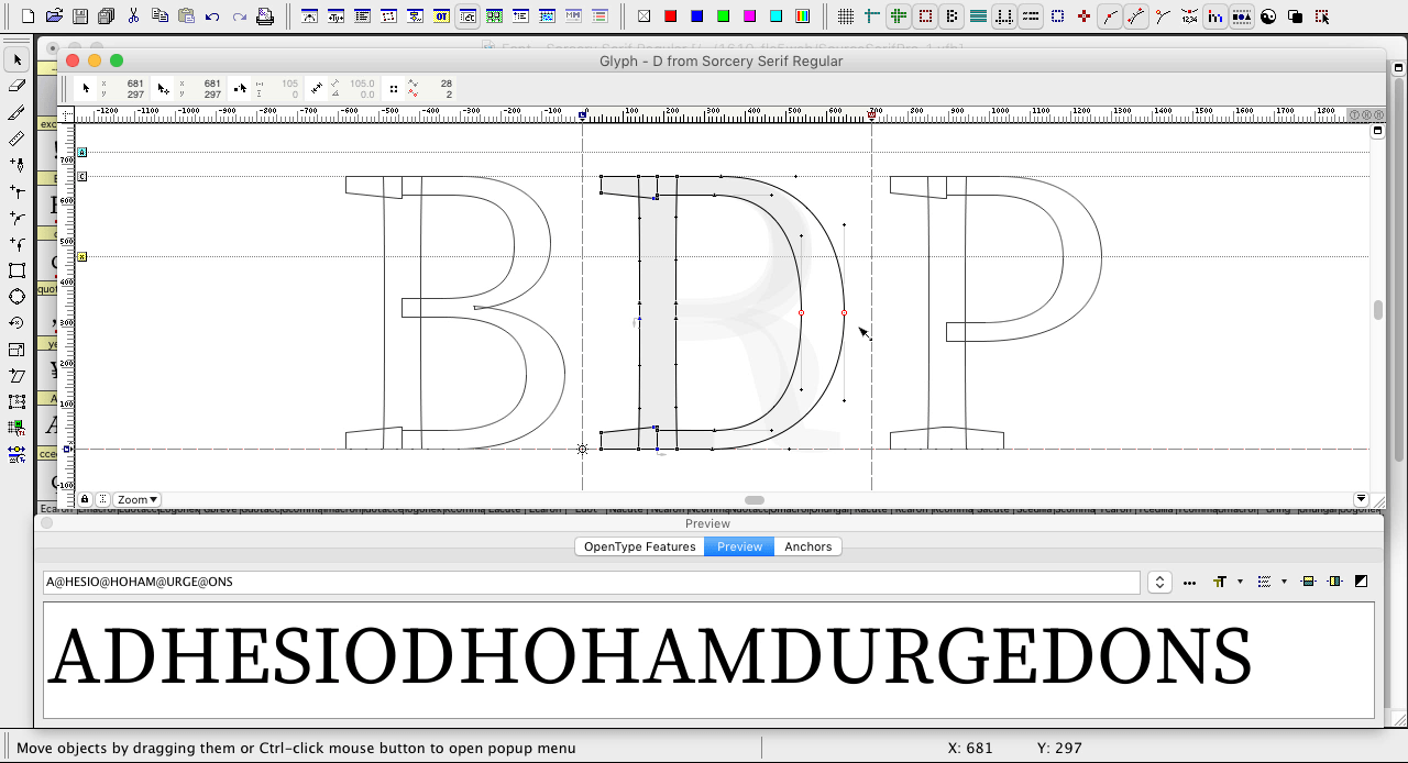 획 두께를 유지하면서 매끄럽고 일관된 글리프 그리기, 비트맵 자동 추적, 겹침 만들기, 경로 단순화, 줄기 균등화, 윤곽 크기 조정을 수행할 수 있습니다. 분수 또는 정수 좌표를 그릴 수 있고, 수치 및 시각적 측정 보기를 보고, 윤곽 결함을 찾아 수정할 수 있습니다.