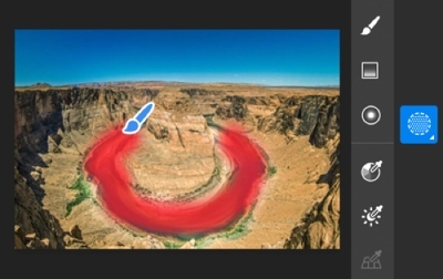 색 및 광도 범위 컨트롤을 포함하는 고급 마스크 도구를 사용하여 원하는 대로 특정 영역을 쉽게 편집할 수 있습니다. 떠 있는 마스크 패널에서 브러시, 선형 및 방사형 그레이디언트 도구에 액세스할 수 있습니다.