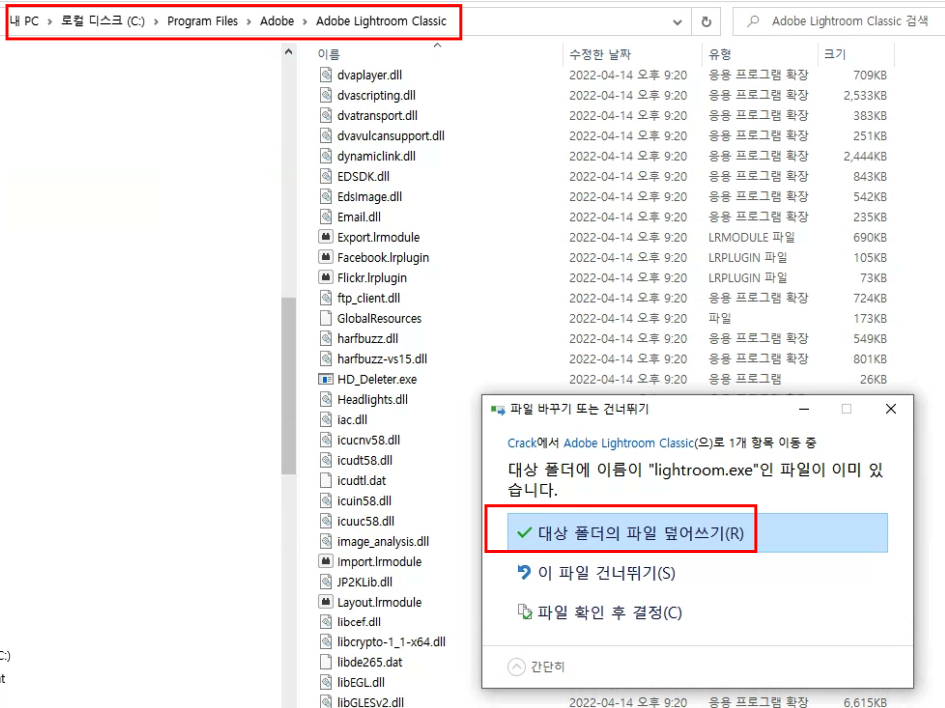 복사한 크랙 파일을 설치된 폴더에 파일 붙여넣기