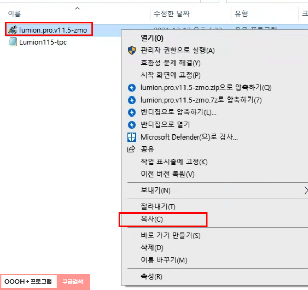 Crack폴더안에 lumion.pro.v11.5-zmo 크랙 파일을 복사합니다.