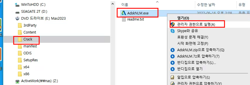 설치폴더에 크랙 관리자 권한으로 실행