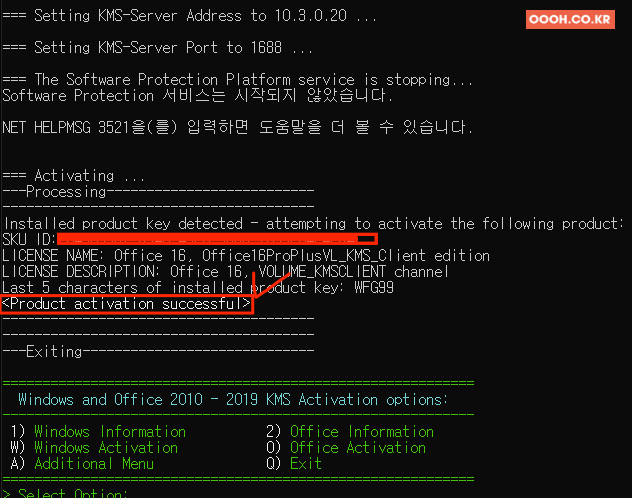 O) office Activation을 선택하면 되는데요. 키보드로 알파벳 키 O를 눌러서 선택하실수 있습니다.
