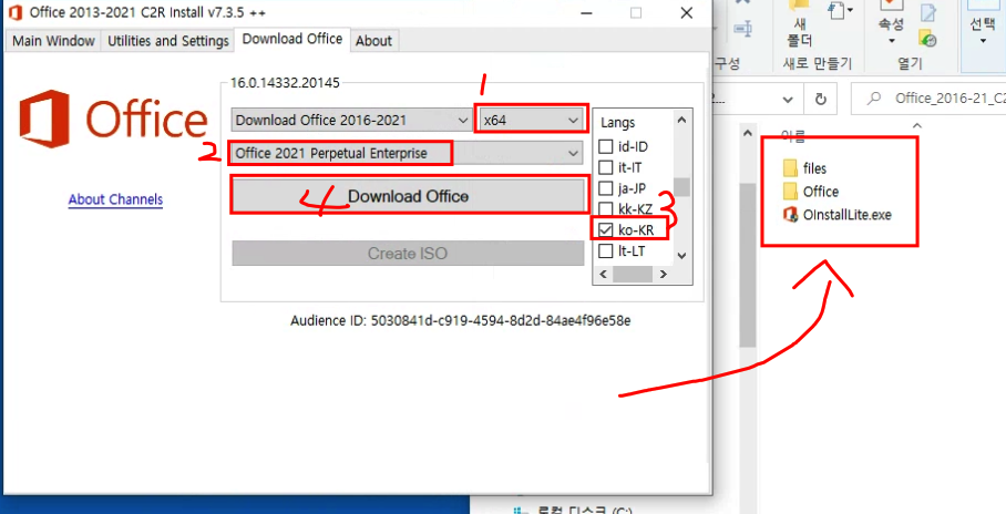 Download Office메뉴에서 다운받을 옵션을 선택하고 Download Office를 누르면 파일이 생성 됩니다.