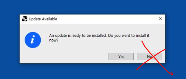 ▼ 만약 업데이트 하라고 뜨면 하지 말것. 업데이트하면 크랙이 깨진다.