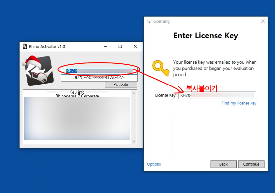 ▼아까 설치 폴더에서 RhinoActivator.zip 압푹파일을 푼다.