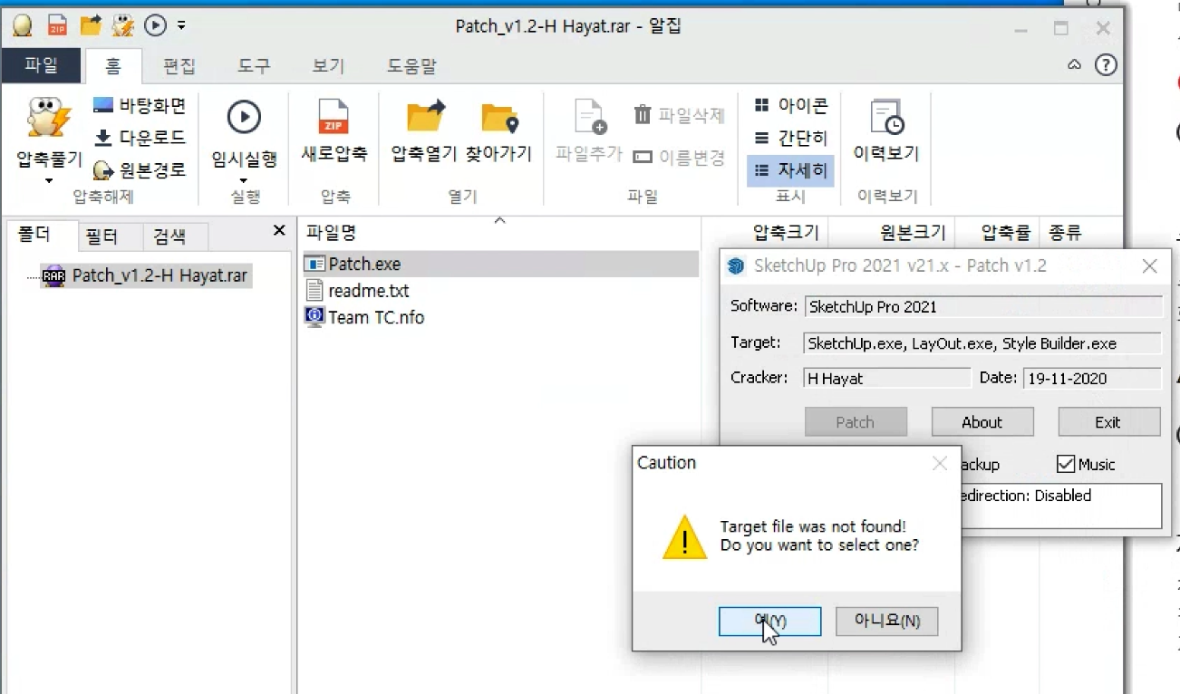 [예] 버튼을 누르고 설치된 경로를 직접 선택해주세요.