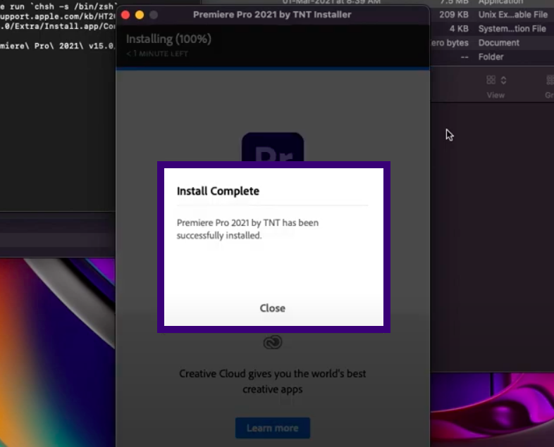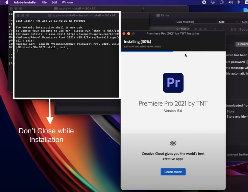여기에서 설치는 설치 프로그램에 의해 완전히 완료됩니다. Adobe Photoshop 2021, Adobe Premiere Pro, Adobe After Effect 또는 Adobe illustrator와 같은 모든 Adobe DMG 파일에서 이 방법을 시도할 수 있습니다.