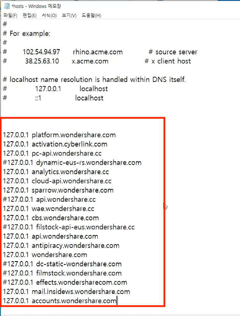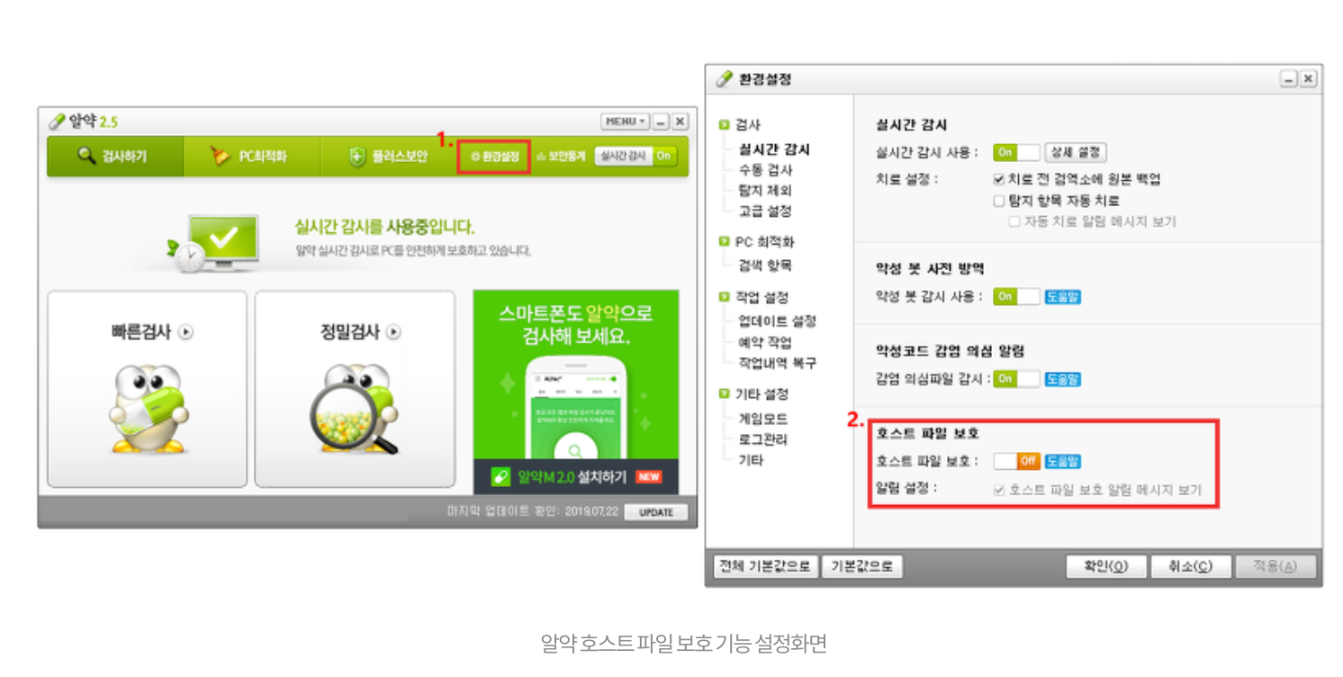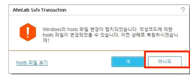 만약 알약이 깔려있으면 hosts수정 가능하게 보호를 끄고 진행해야합니다.