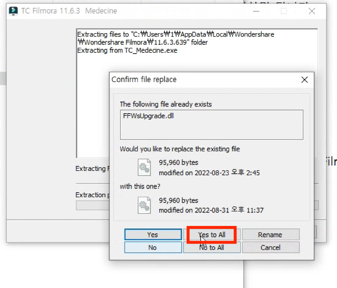 위치가 열리면 필모라 설치 경로를 복사합니다.