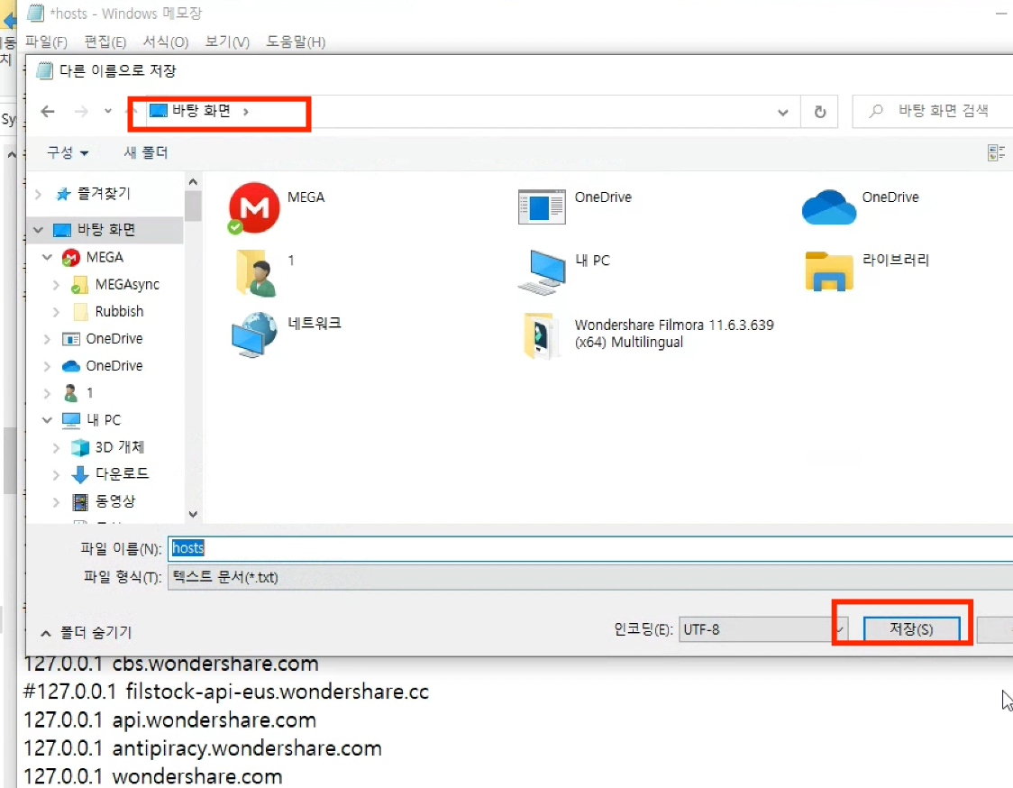 바탕화면에 저장된 파일에서 뒤에 .txt삭제하여 수정