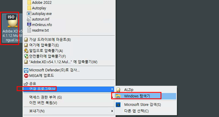 ISO파일 > 마우슨 오른족키 > 탐색기로 열기