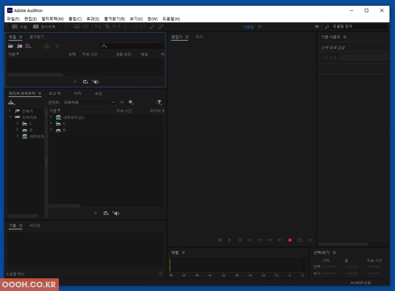 시작 버튼을 누르고 Adobe Audition 2021을 실행합니다.