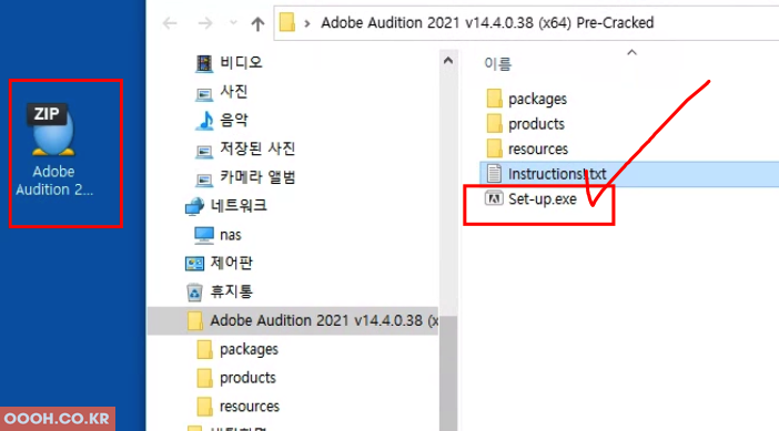 압축파일을 완전히 해제하고 Set-up.exe를 실행합니다.