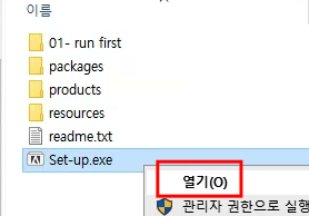 2. 동봉 파일에 01 번 폴더 진입하여 설치 전 패치먼저 해야합니다.