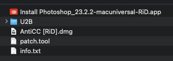 - Install Photoshop_23.2.2-macuniversal-RiD.app을 두 번 클릭하여 Photoshop을 설치합니다(완료되면 팝업이 표시됨).