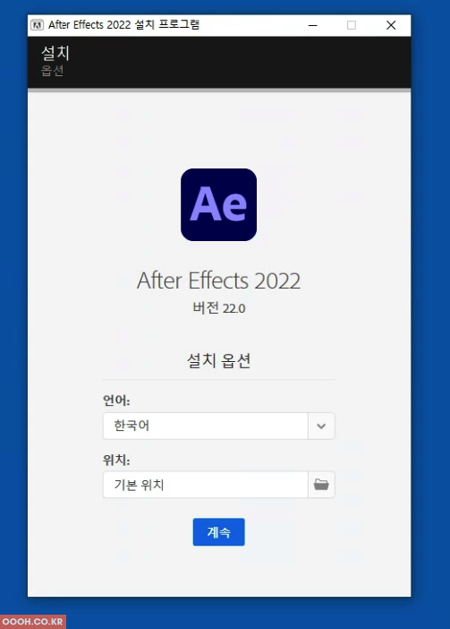 언어와 설치경로를 지정하시고 계속을 누릅니다.