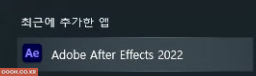윈도우 시작을 누르고 새로 추가된 에펙2022 을 실행합니다.