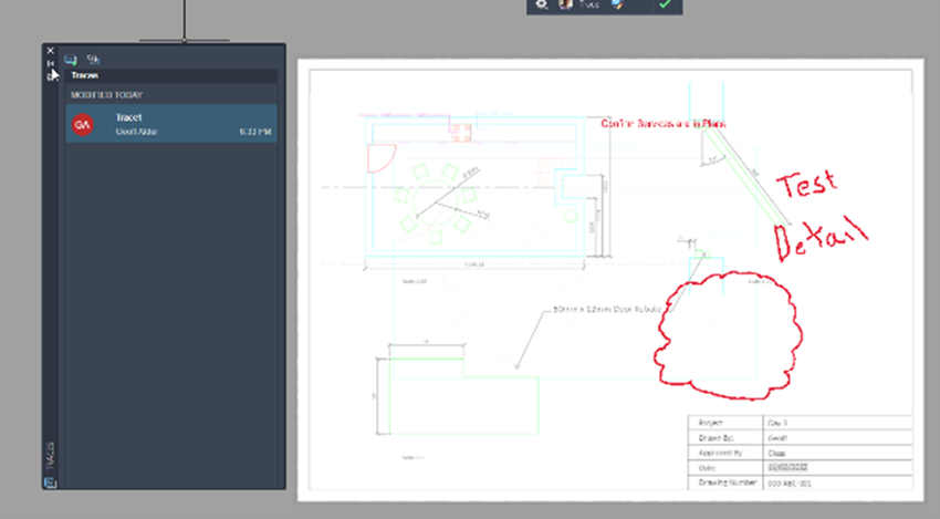 이제 마크업이 추적 팔레트에 나열되어 사용자에게 수정 지시 편집이 도면에 추가된 시간을 제공합니다.