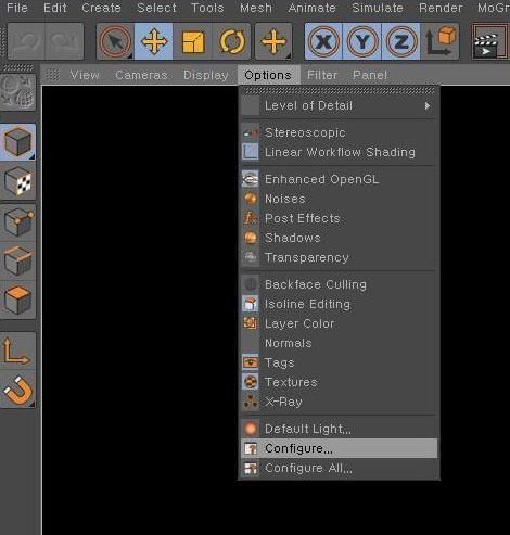 view port 바로 위에 메뉴에서 option > configure 을 열어서...