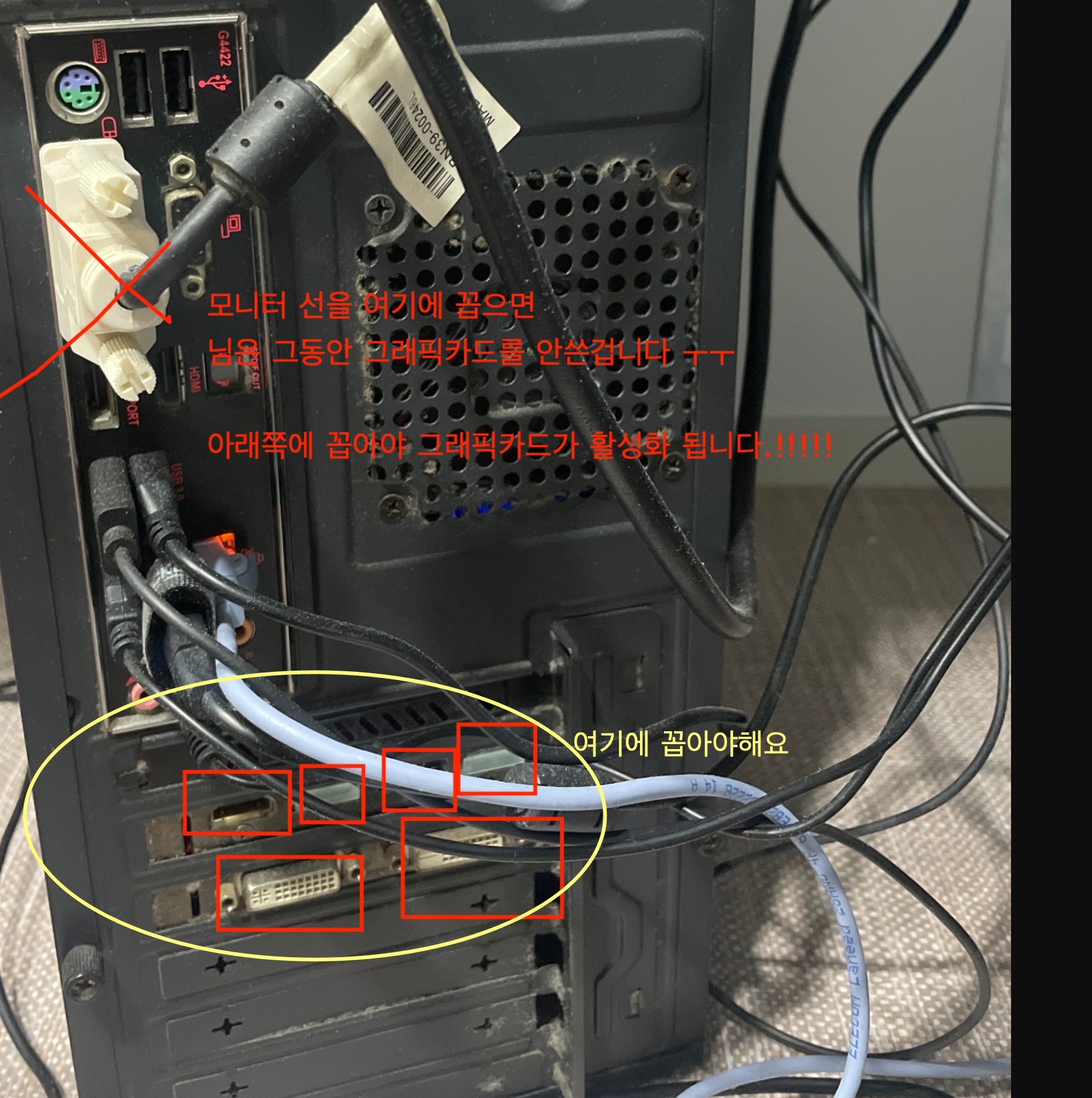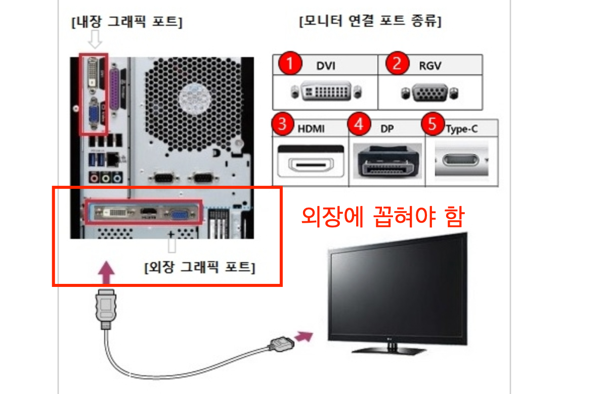 ㄴ PC의 경우 외장 모니터 케이블이 외장 그래픽카드에 꼽혀있어야한다. (아래 사진첨부)