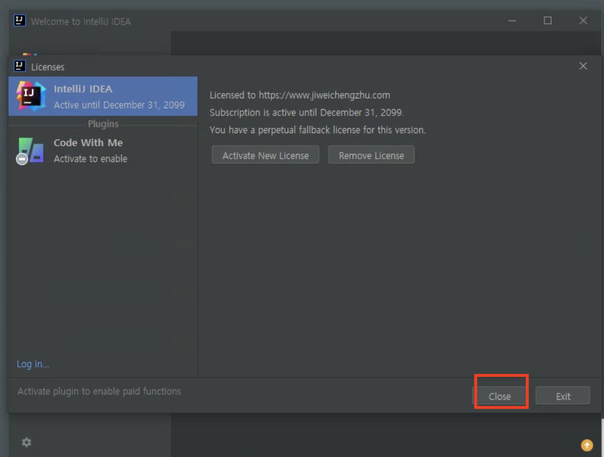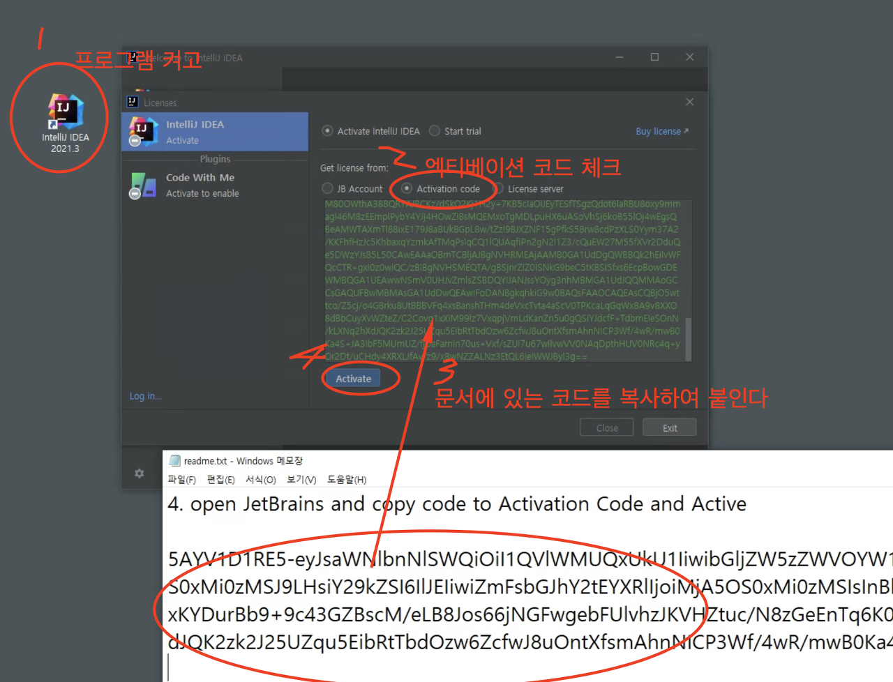 4. JetBrains를 열고 활성화 코드 및 활성에 코드 복사