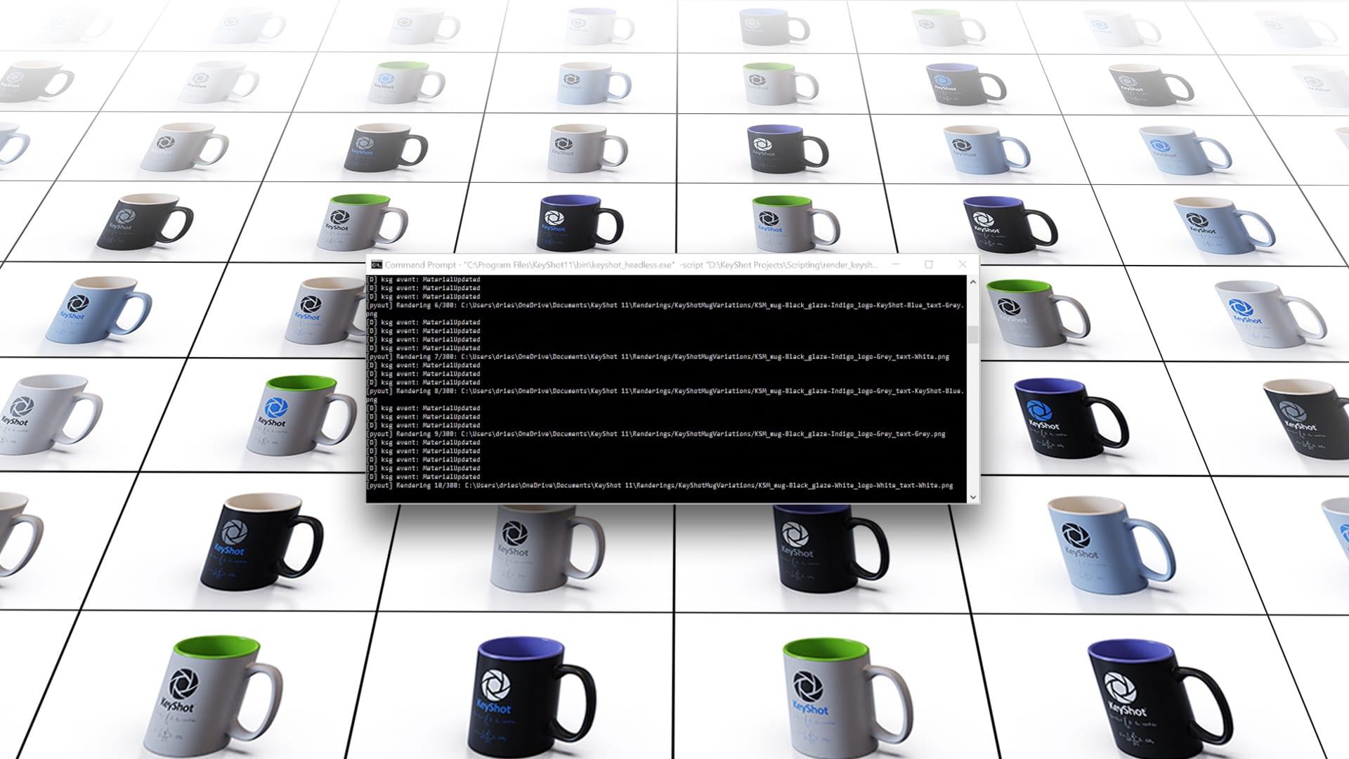 KeyShot 11 워크플로 자동화는 머티리얼 그래프 및 렌더 출력을 포함한 일련의 기능을 자동화하기 위해 헤드리스 렌더링을 제공합니다.